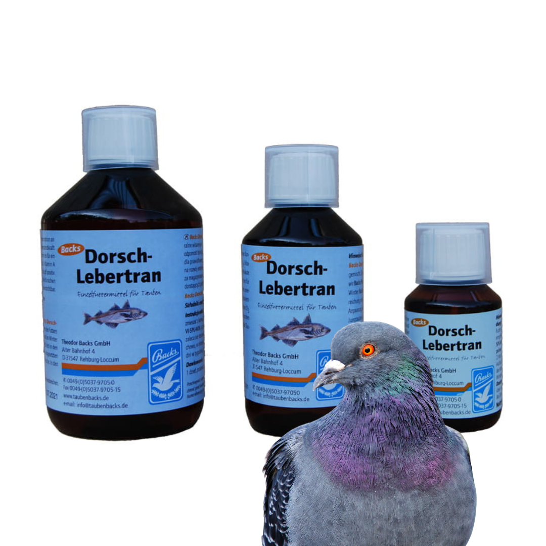 Backs Lebertran to wysokiej jakości tran wątrobowy, który wyróżnia się dużą zawartością witamin A i D3. Tran ten stanowi doskonałe źródło tych witamin, szczególnie w okresach, gdy dostęp do naturalnego światła słonecznego jest ograniczony, jak wczesną wiosną, jesienią i zimą. Dzięki temu jest idealnym dodatkiem do diety gołębi w tych porach roku.