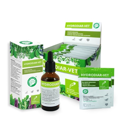 | Nazwa handlowa | Hydrodiar vet bloker biegunek na biegunke żółty gózek rzęsistek u gołębi vet animal |