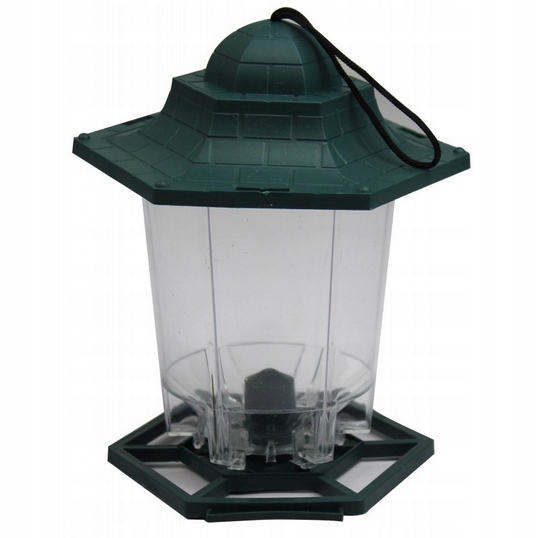 Plastikowy karmnik dla ptaków do wypełnienia karma albo nasionami. Karma wysypywana jest na tackę z kilkoma przegródkami. Łatwy w utrzymaniu czystości. Do powieszenia.