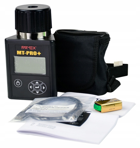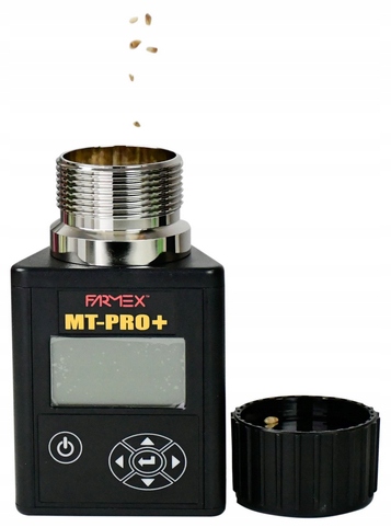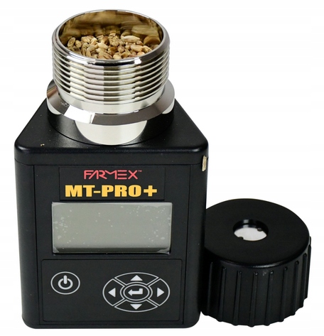 Miernik wilgotności ziarna Farmex MT Pro to wysokiej jakości wilgotnościomierz do ziarna. Jest to sprawdzone urządzenie cieszące się bardzo dobrą opinią użytkowników na polskim rynku. Nasz wilgotnościomierz do ziarna jest jednym z nielicznych urządzeń w Polsce, które daje pomiar zbliżony do pomiarów dokonywanych na punktach skupu. Dokonanie pomiaru wilgotności ziarna w okresie żniw, pozwala wybrać najlepszy moment do koszenia i uzyskać najlepszą cenę zbytu. Menu urządzenia dostępne jest w języku polskim.