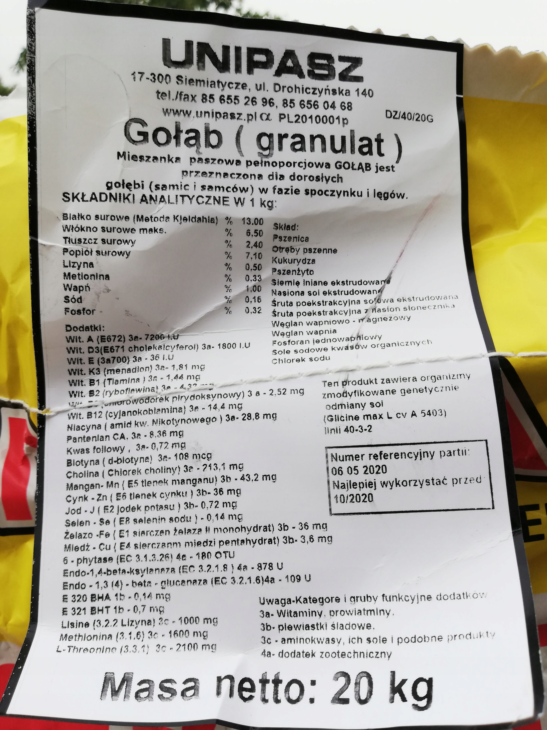 Opakowanie: 20 Kg
