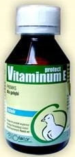 Preparat stosuje się u gołębi celem uzupełnienia niedoborów witaminy E. Szczególnie polecany jest przy zaburzeniach płodności u samców i samic (nawykowe poronienia, niedoczynność jajników, upośledzony proces produkcji plemników, niepłodność bezobjawowa, niechęć do krycia, spadek nieśności, zamieranie zarodków, słaba wylęgowość i zapładnialność jaj), przy chorobach wątroby (zwyrodnienia, martwice), a w okresie rekonwalescencji po przebytych chorobach zakaźnych i pasożytniczych oraz przy stwierdzonych zaburzeniach w układzie ruchu, krążenia i nerwowym (degeneracja mięśni, niewydolność mięśnia sercowego, brak koordynacji ruchów). Vitaminum E należy także podawać przy zatruciach pokarmowych oraz zmianach jakościowych paszy. Preparat usprawnia przemiany metaboliczne oraz zapobiega niedoborom aminokwasów egzogennych.