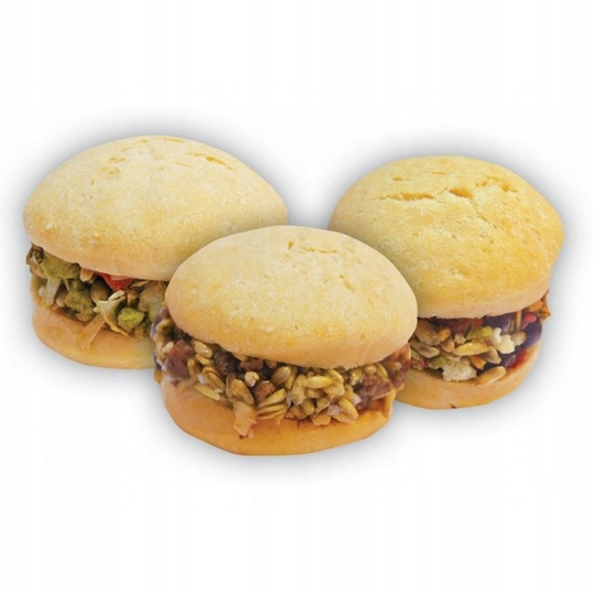 Przysmak uzupełniający dietę, w formie pszennej bułeczki wypełnionej najlepszymi ziarnami zbóż i kawałkami owoców, warzyw i orzechów. Dostarcza naturalnych witamin, minerałów i pektyn.
